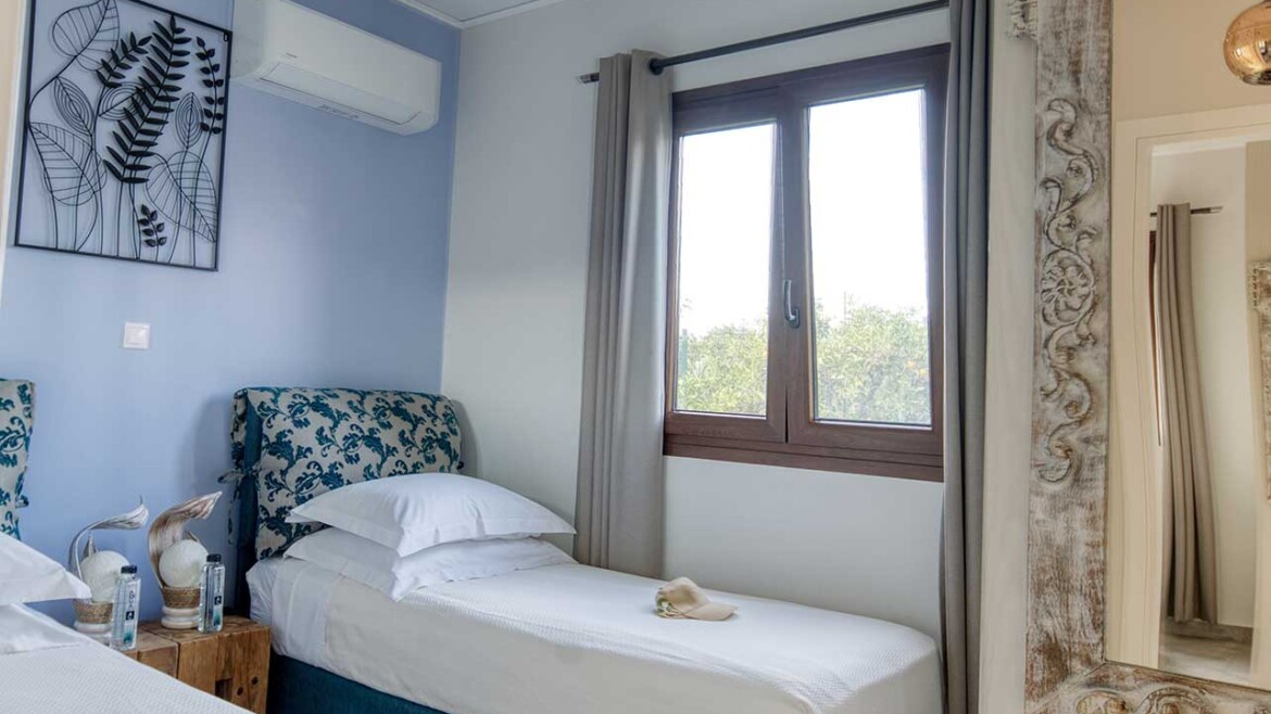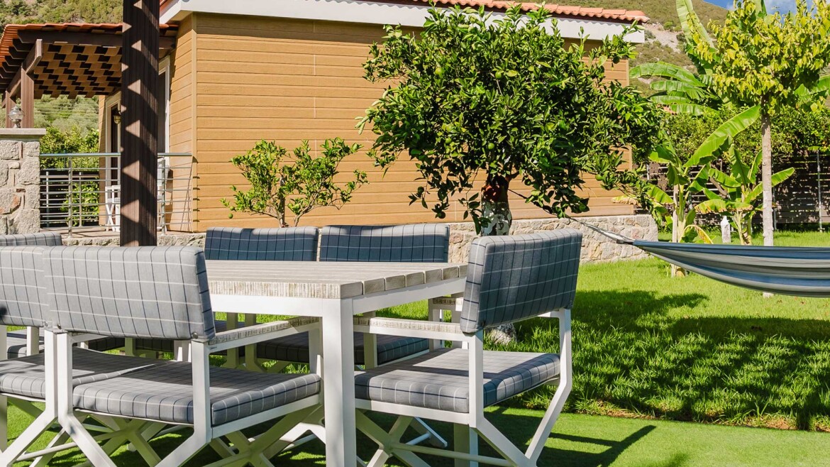 The Valencia House is a 50sq.m. two-bedroom house with spacious living room and a fully equipped kitchen. The bathroom is equipped with a hair dryer, heated mirror and luxurious amenities. All rooms have A/C and ceiling light with fans. It offers outdoor barbeque and sitting area surrounded by our orange trees.